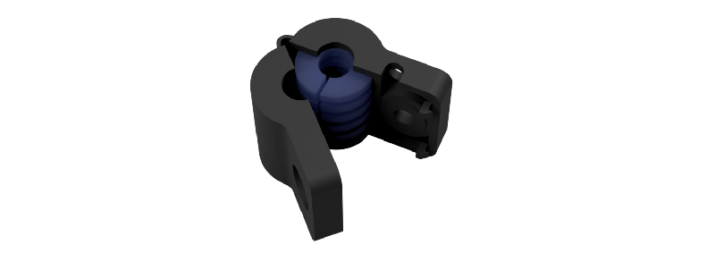 Provided are holders for 4.25, 5.50, and 10.50 mm diameter cables (7.5 mm is an antiquated versiont) . To 3D print, download the zip file and send these through Bluesmith; the two .stls named InsertL and InsertR are made to be printed in a more flexible material, and the hinge can be printed in either a semi-flexible material or in the same rigid material as the outer shells.