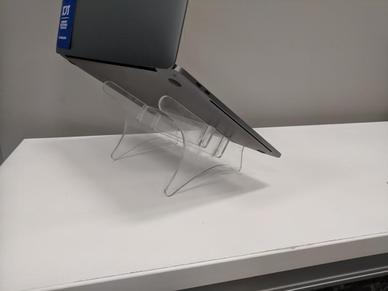 This is a Macbook stand. It holds the laptop off of the table and at a good viewing angle.